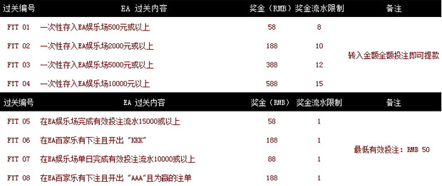富易堂任何会员完成以下任何一项过关任务,即可获得该过关任务相对应奖金红利!每位富易堂会员都可享赢取33关奖金红利的机会!